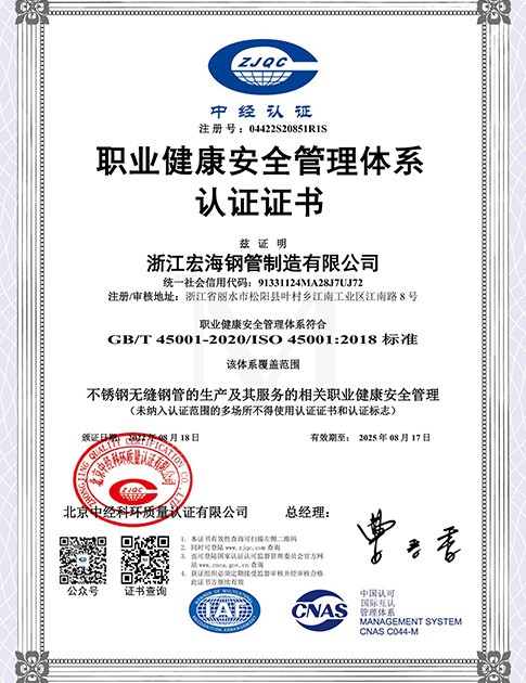 浙江宏海鋼管制造有限公司(前身為溫州市皓立不銹鋼有限公司)成立于2016年11月,公司注冊資金5180萬元,是一家集生產、銷售與一體的不銹鋼無縫鋼管及制品的民營企業。公司位于風景秀麗的甌江上游,有“江南桃源秘境”之稱的麗水市松陽縣江南工業區;交通便利,離松陽高速出口僅4公里,離衢寧鐵路松陽站僅2公里;占地面積30余畝,總投資9000多萬元。
